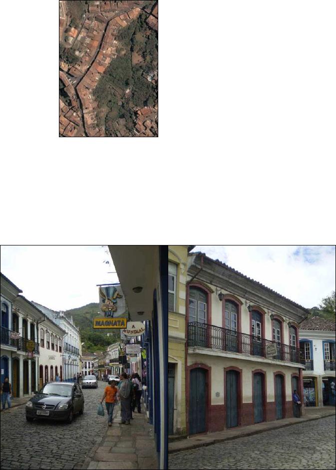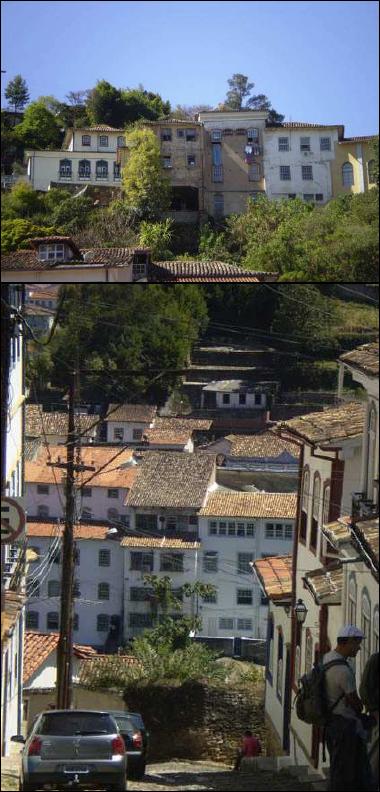 de becos, travessas e ladeiras, com as ruas principais acompanhando o desenho topográfico dos