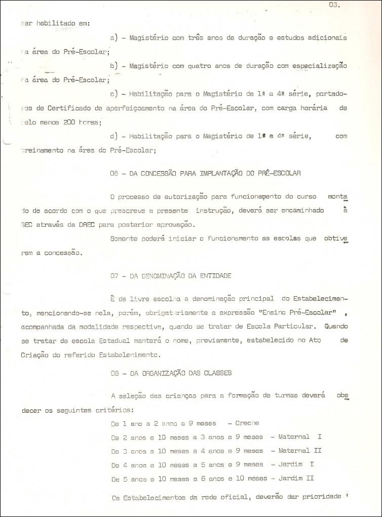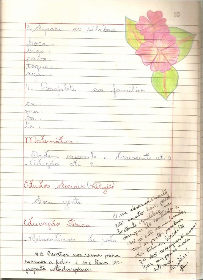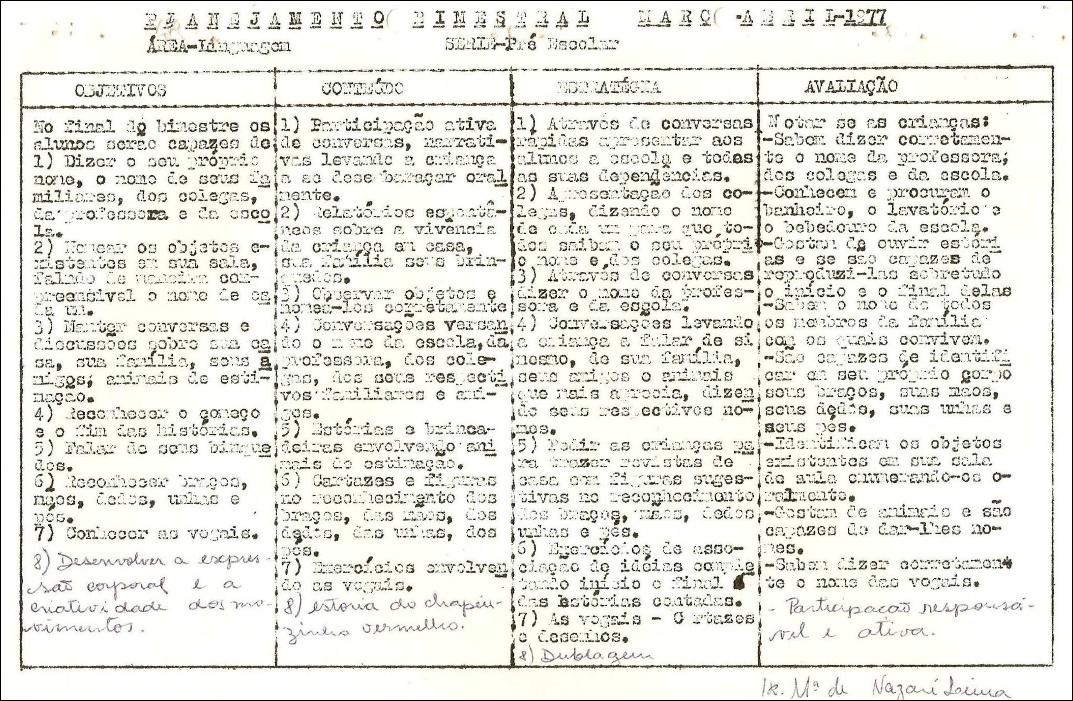 da coordenação motora, cujo quadro programático para a área de Língua Portuguesa é