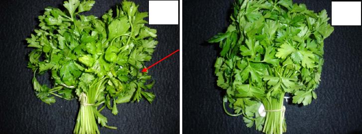 frescas de salsinha armazenadas a 5 ºC por 10 dias nos