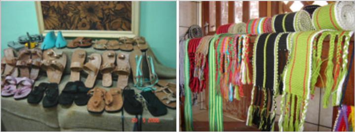 para recreação e outros trabalhos. Ao lado, também coberto com palha, há três mesas grande
