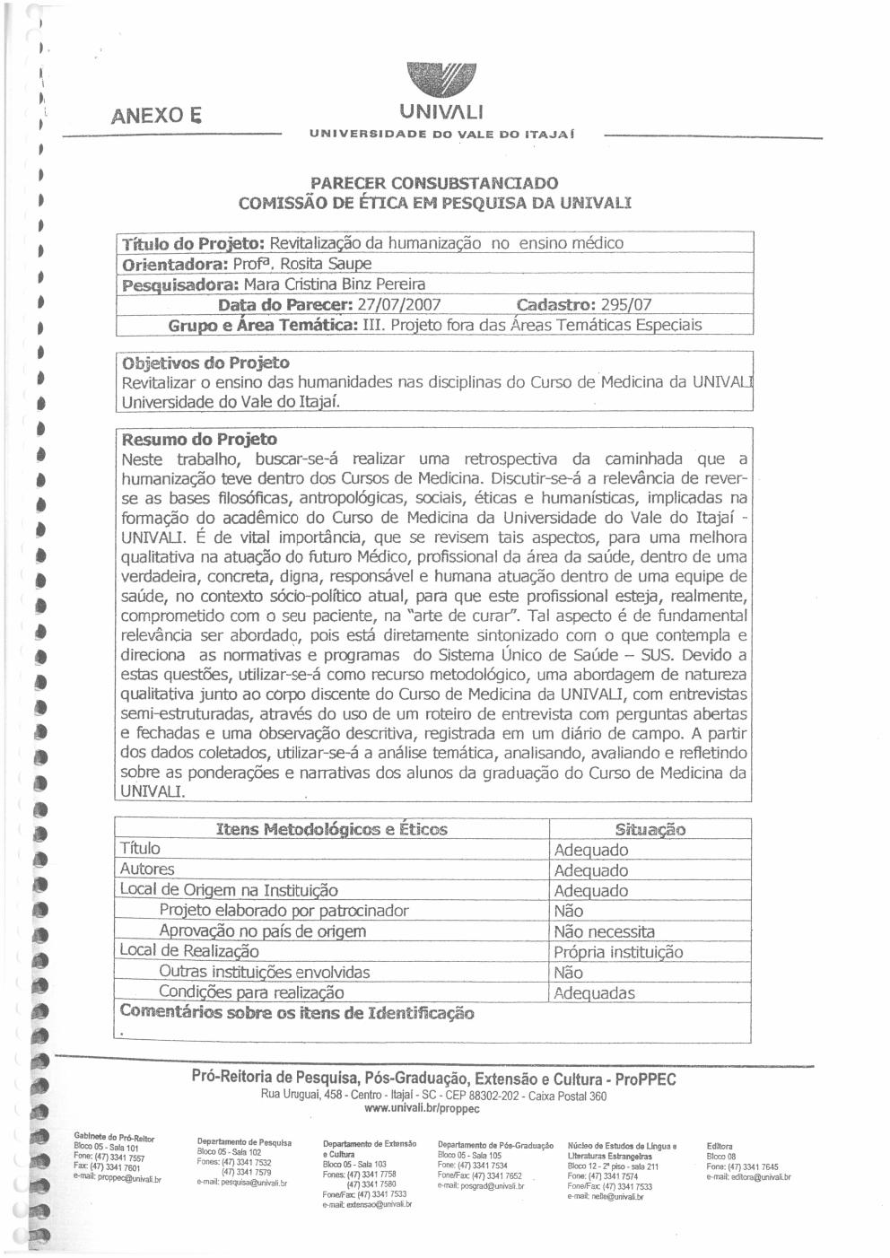 dentro do Curso de Medicina da UNIVALI. A justificativa desta pesquisa apóia-se