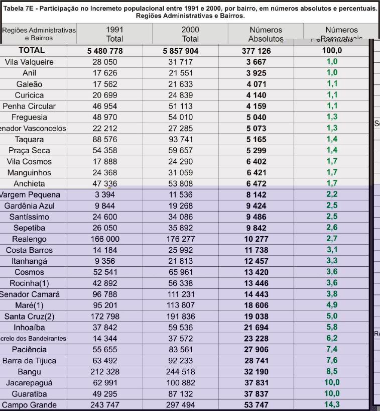 Observe-se que a Baixada Fluminense é ainda a área que maiores contingentes populacionais