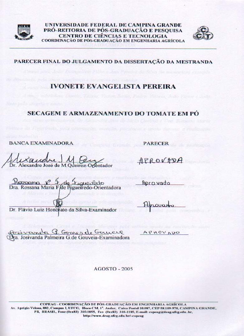 2005 Secagem e armazenamento do tomate em pó / Ivonete Evangelista Pereira.