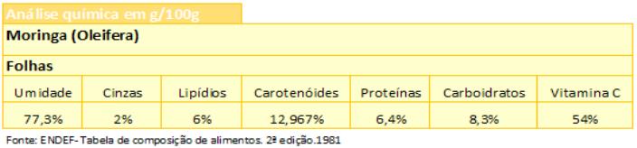 Caracterização Físico-química da folha, flor e vagem da Moringa. Universidade