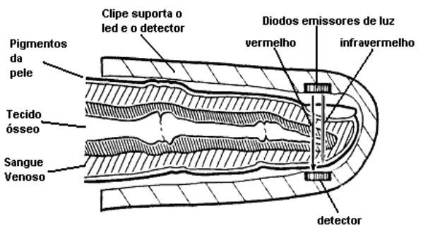 destinado a medir a saturação arterial de oxigênio. A determinação da saturação de oxigênio