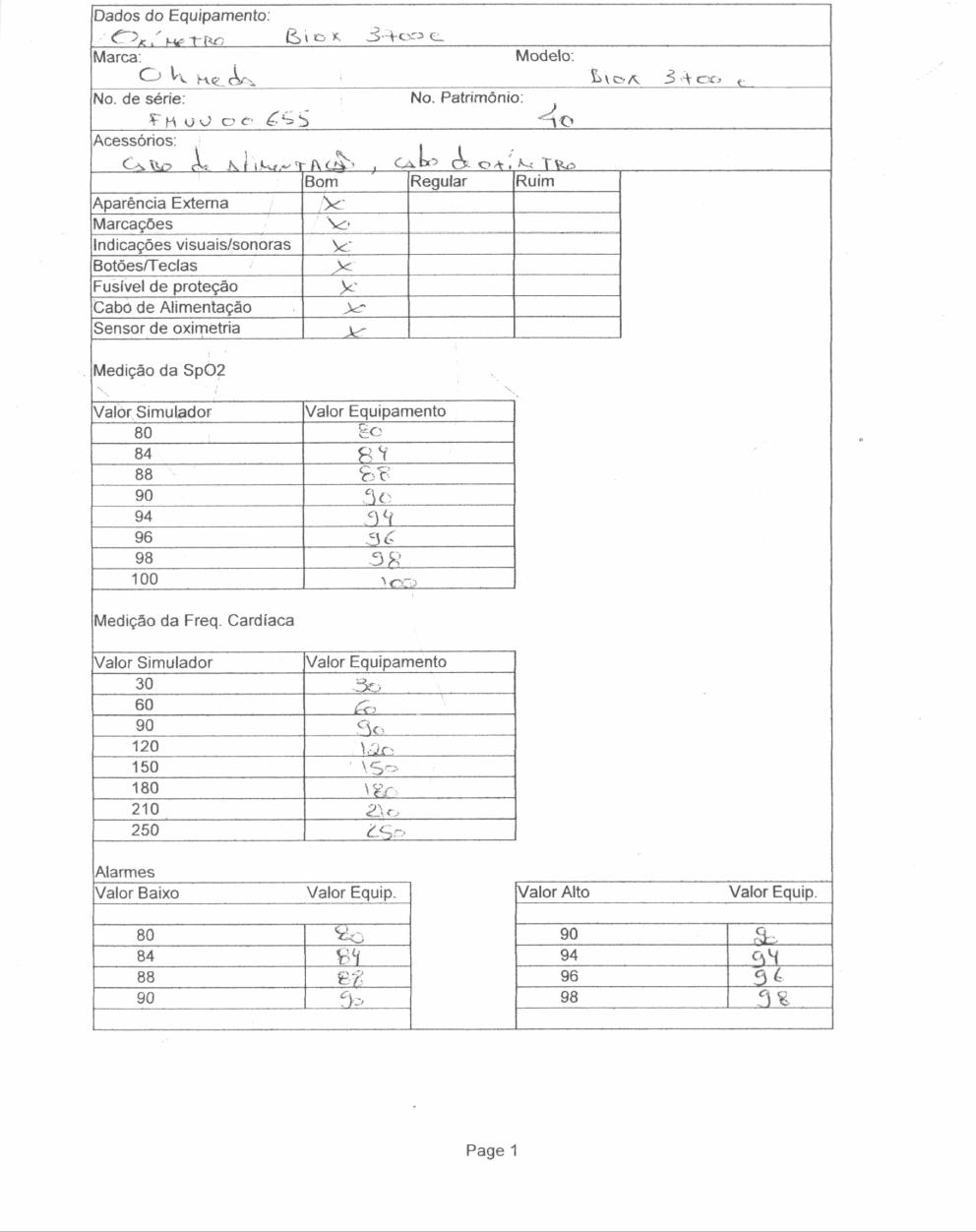 resultados de funcionamento do protótipo foram comparados com um simulador de oximetria