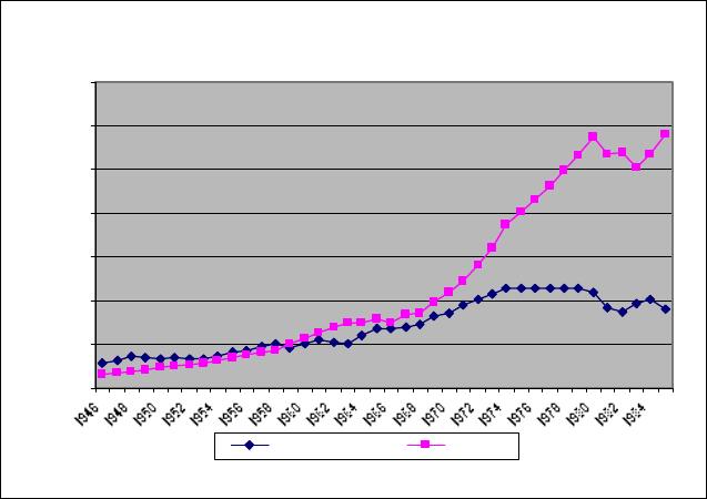 Estados Unidos, com pico de 28,11% em 1973. Em 1980, o percentual ainda era elevado, 21,16%