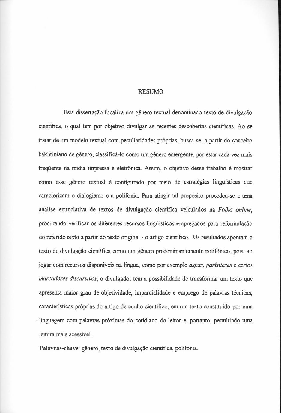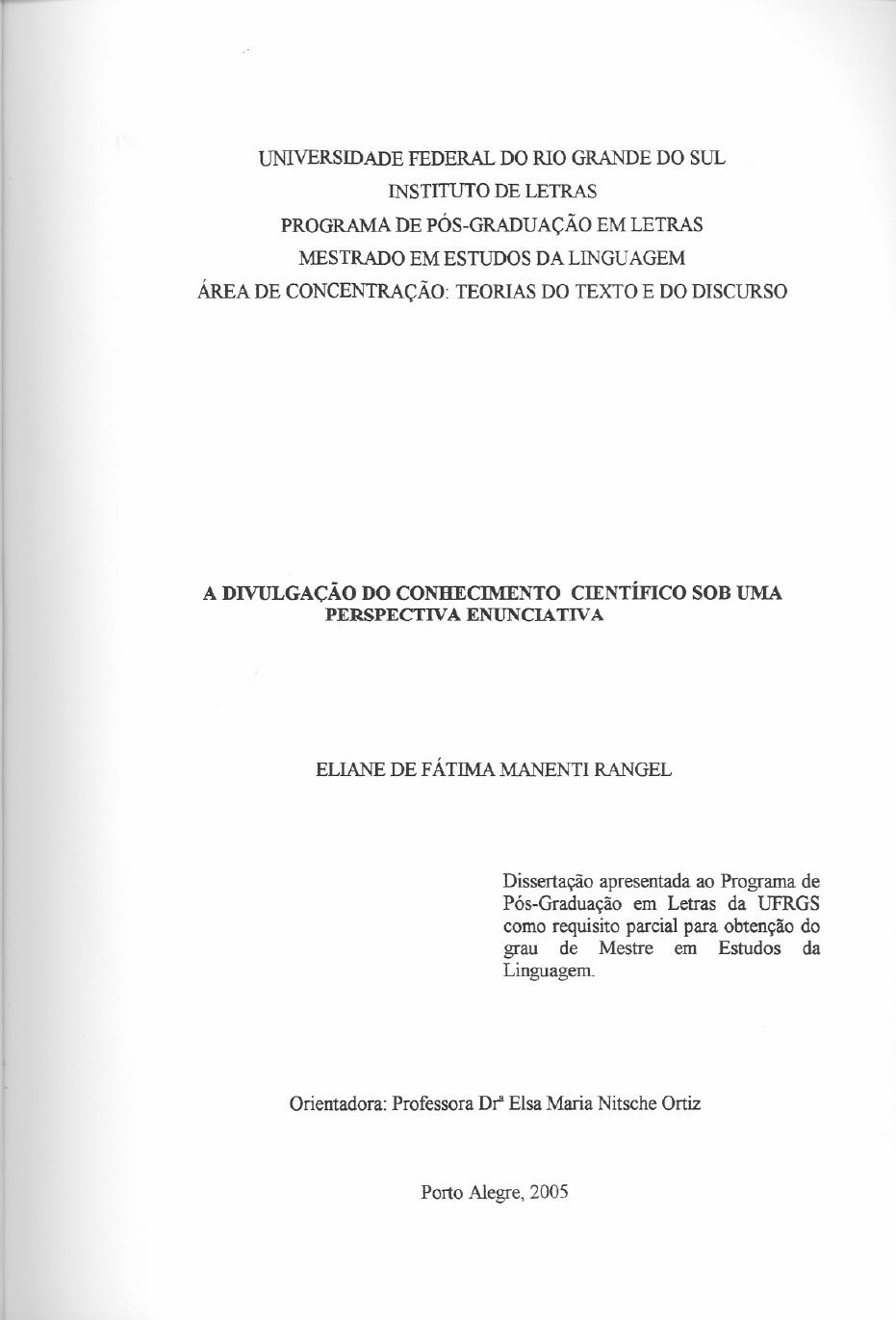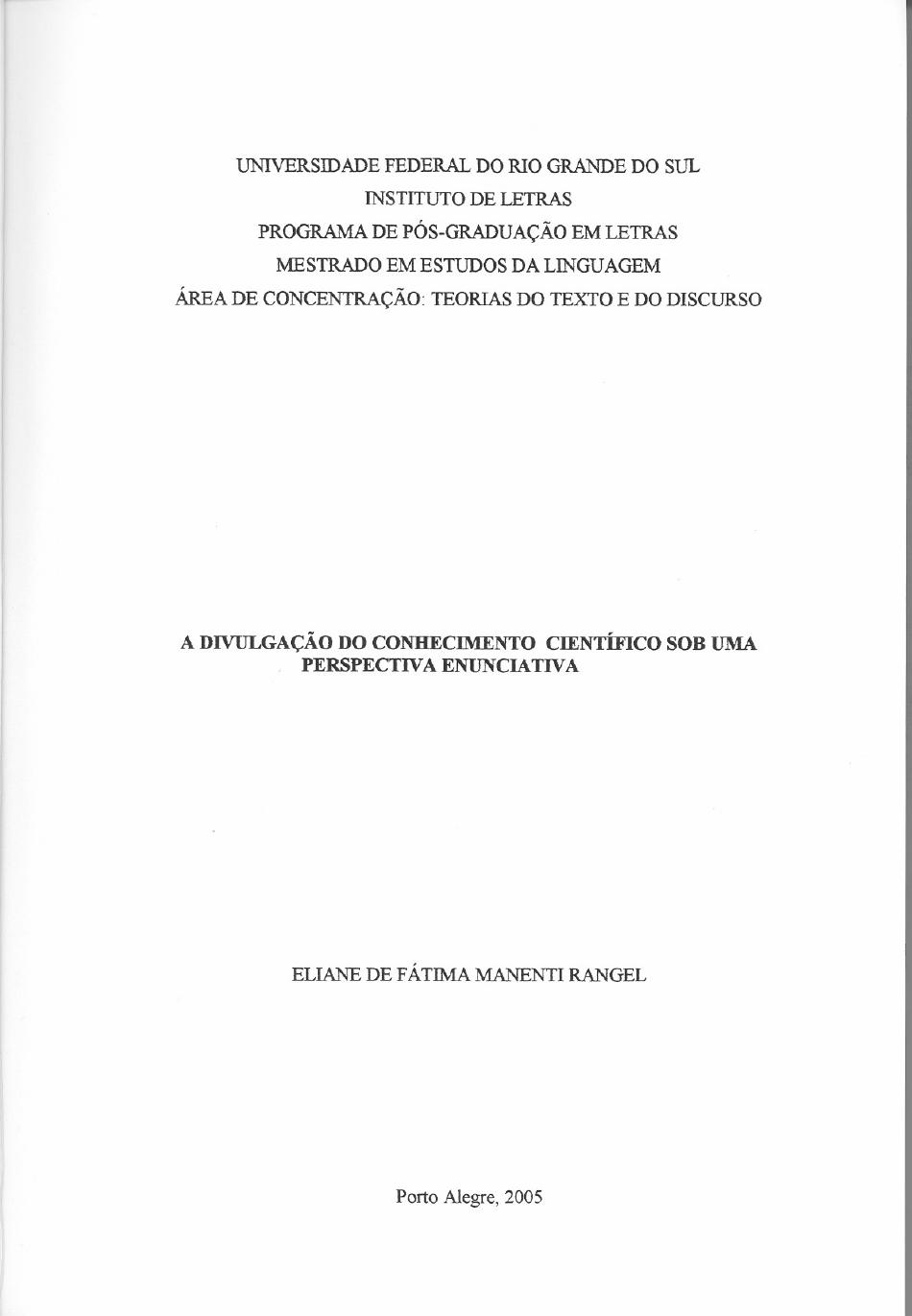 ciência. Dissertação de mestrado, Santa Maria: Programa de Pós-Graduação em Letras,
