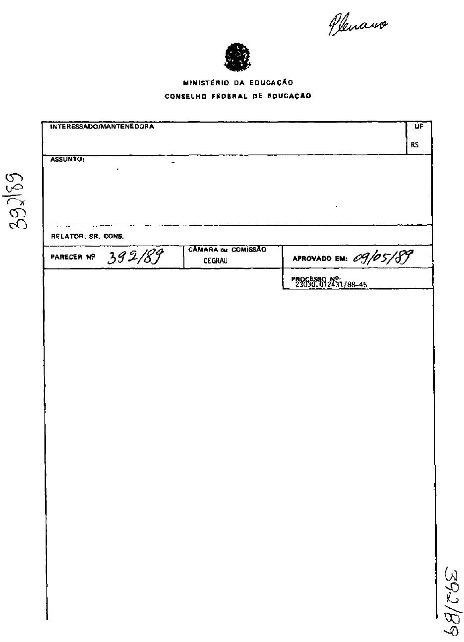Entendemos que, na linha do Parecer CFE nº 391/89 que tratou de matéria idêntica,