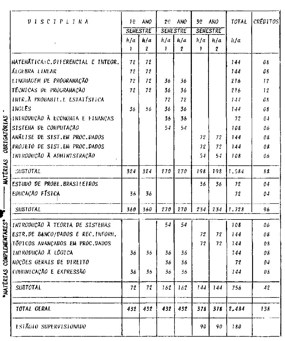 matérias complementares - 756 h/a, perfazendo um total de 2.340 h/a, o que