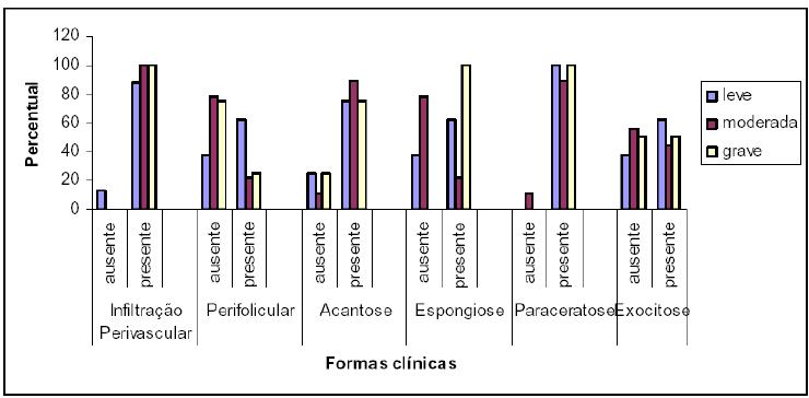 sua relação com a forma clínica segundo o escore SEDESS e p-valor do teste