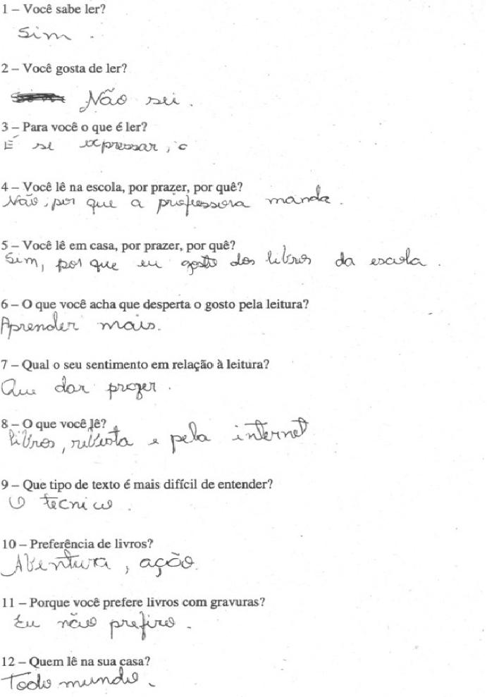 2) A história dos alunos pesquisados em relação à leitura é marcada por contatos com o