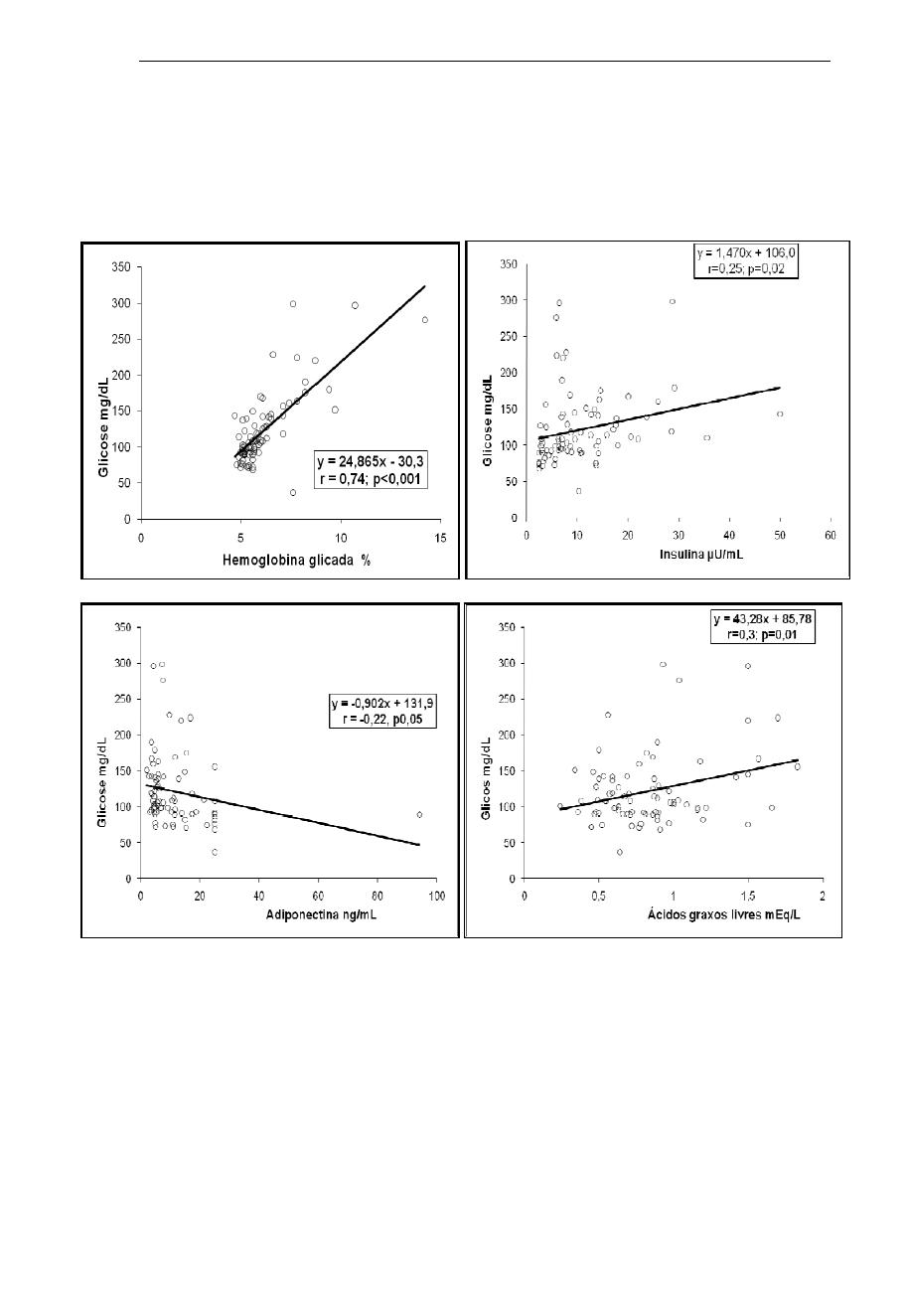 mostraram associação significativas com glicose: HbA1c (p<0,001), insulina