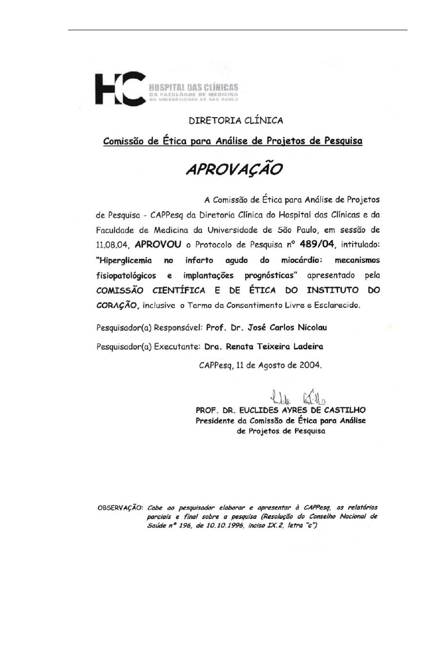Ladeira RT. Hiperglicemia no infarto agudo do miocárdio: correlações