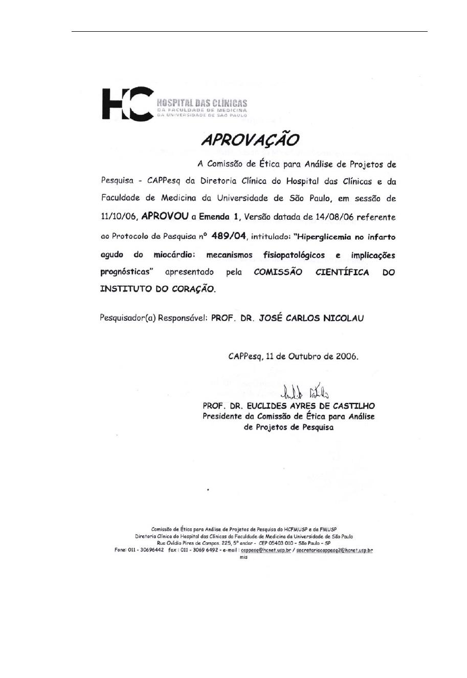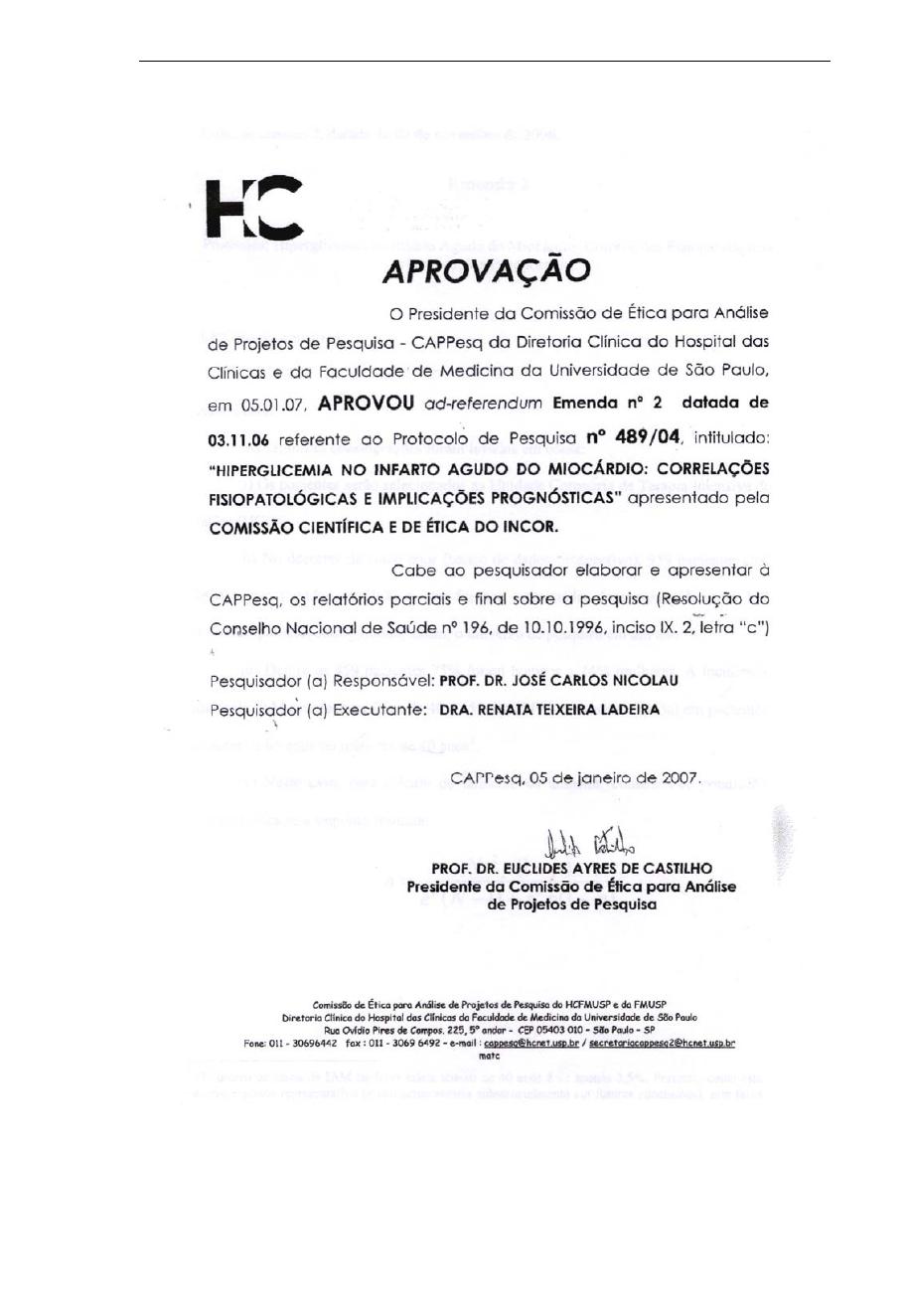 Descritores: infarto do miocárdio, hiperglicemia/fisiopatologia, hemoglobina A