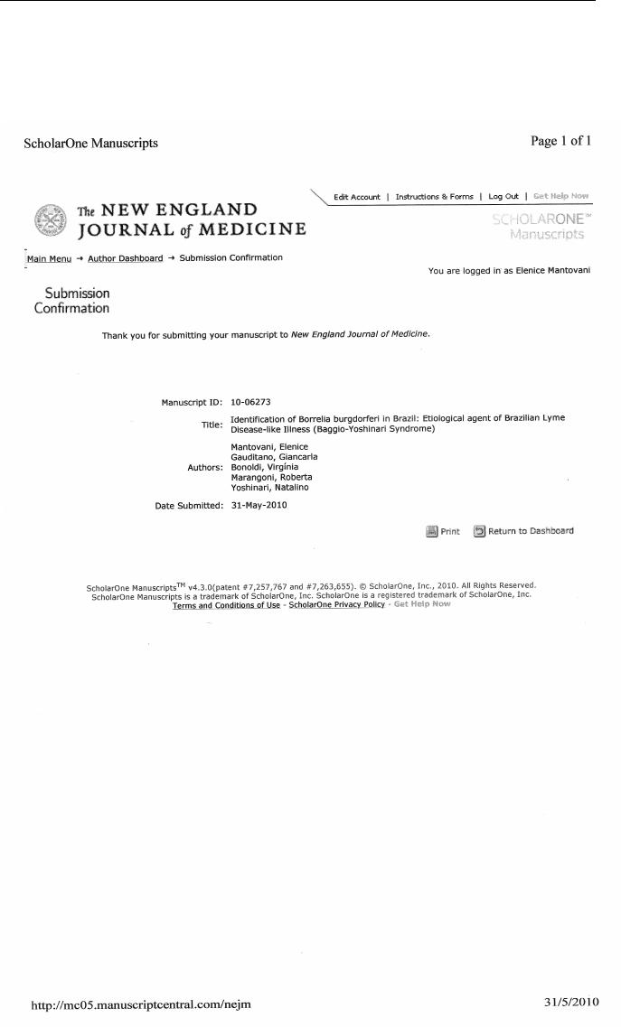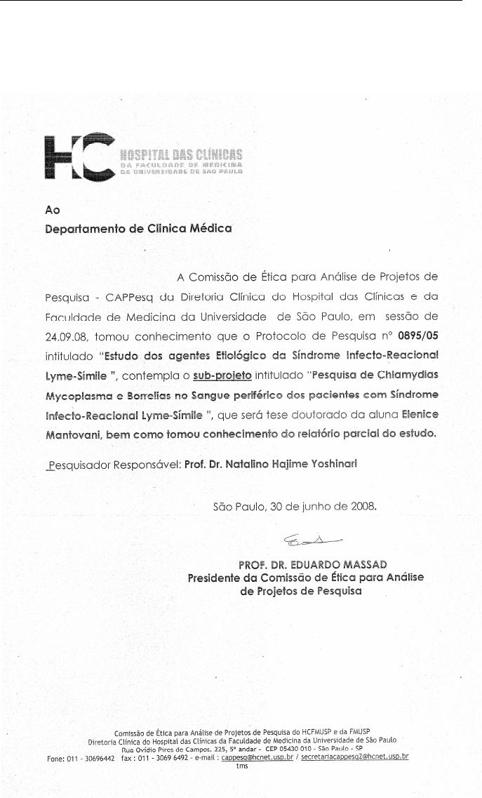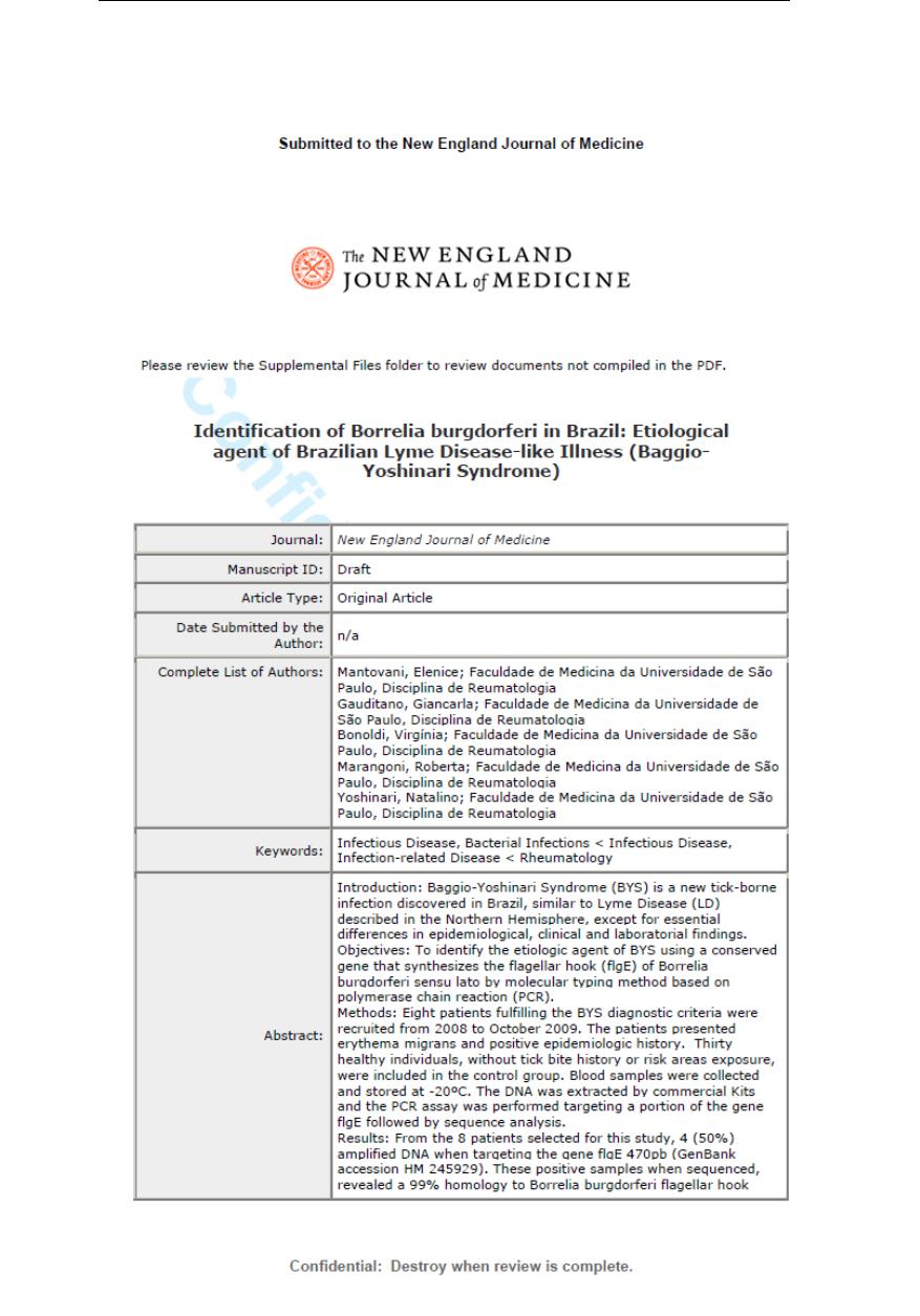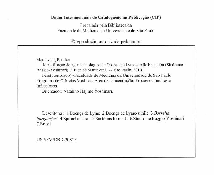Mantovani E. Identificação do agente etiológico da Doença de Lyme-símile