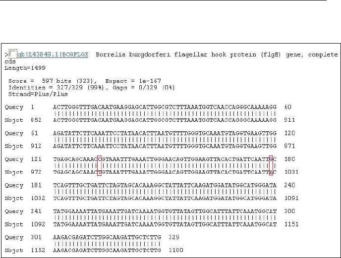 da Borrelia burgdorferi (flgE) depositada no GenBank (L43849). Esta