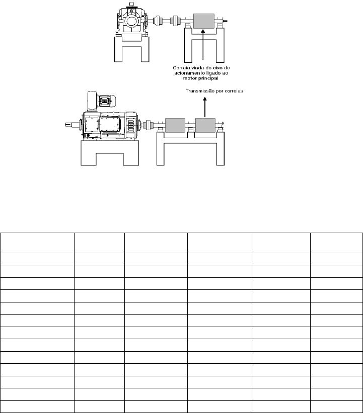 diâmetros das polias ou o número de dentes são especificados na coluna 4.