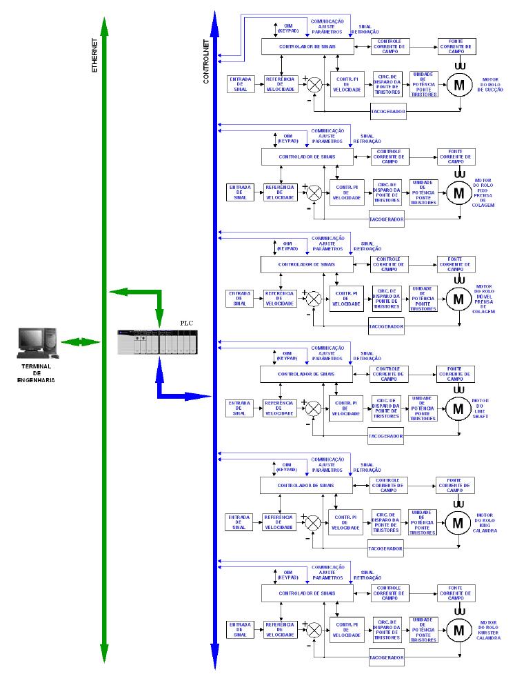 contínua ou alternada com regulagem de freqüência. Sendo utilizado motores de corrente alternada, cada