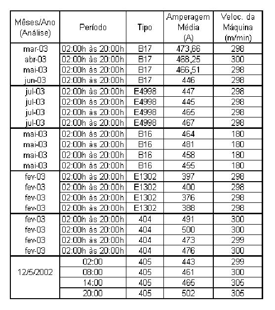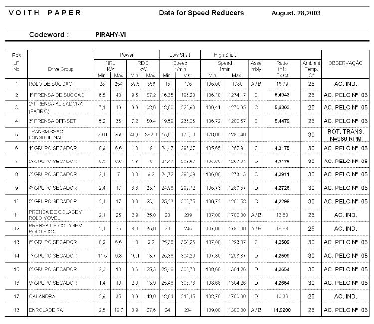 5. As rotações indicadas na coluna 6, referem-se ao eixo de acionamento do grupo e correspondem a rolos em