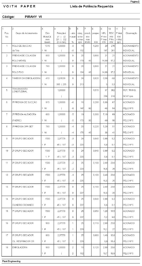 modo de operação, só serão fornecidos com listas de potência requerida definitivas (status final F).