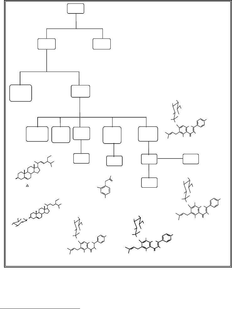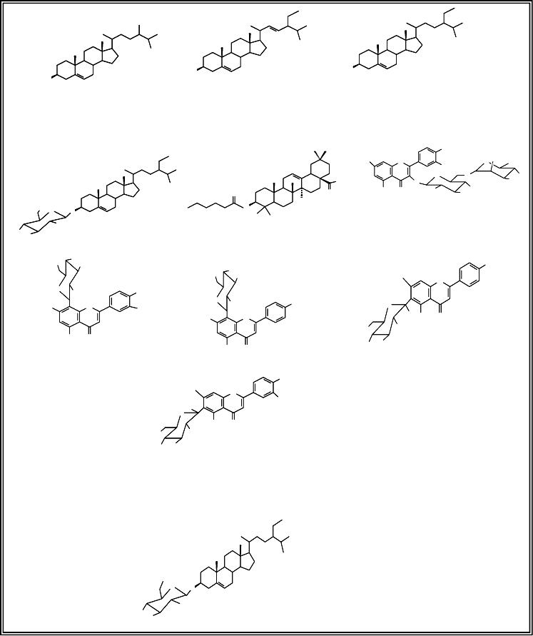 As frações 5–8 foram reunidas e delas obitido o flavonóide Swertiajaponina (10)
