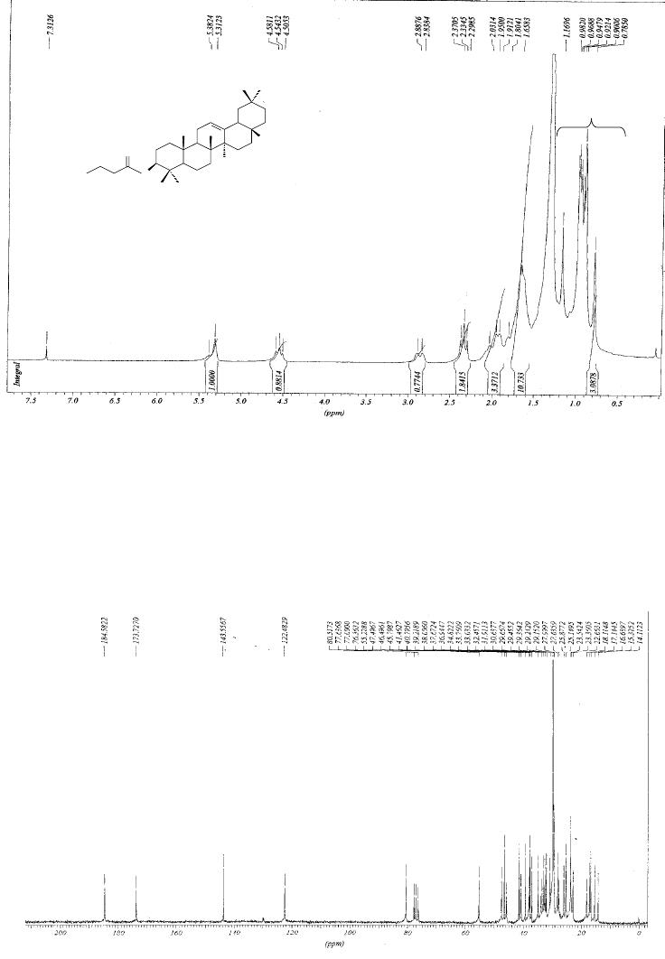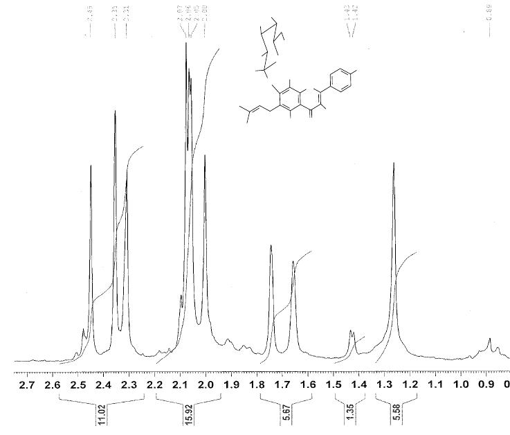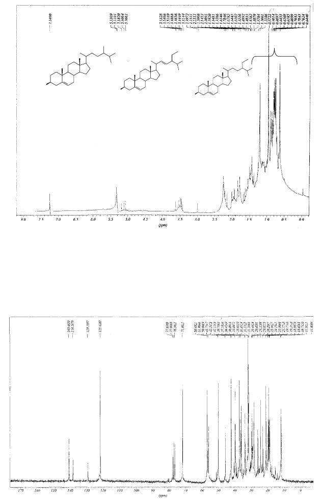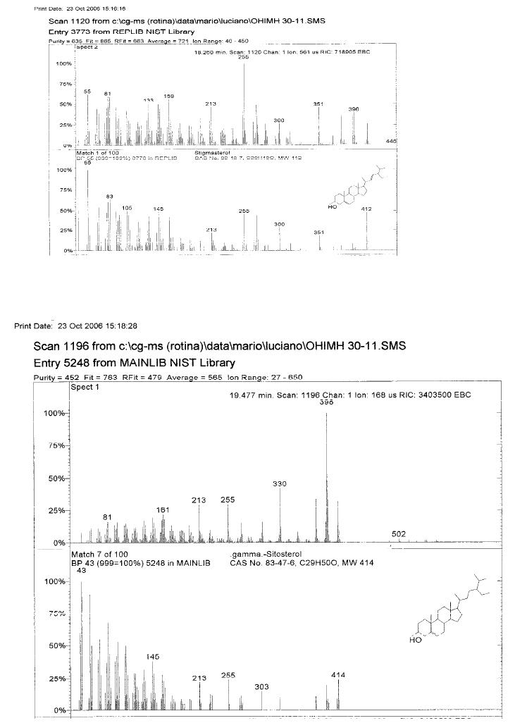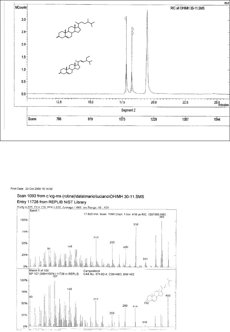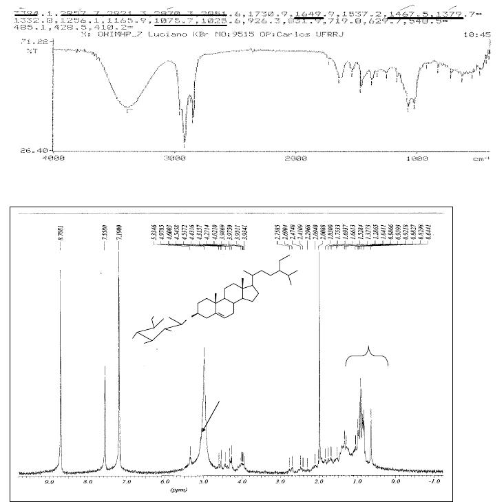 As frações 3-5 forneceram um sólido amarelo identificado como mistura dos