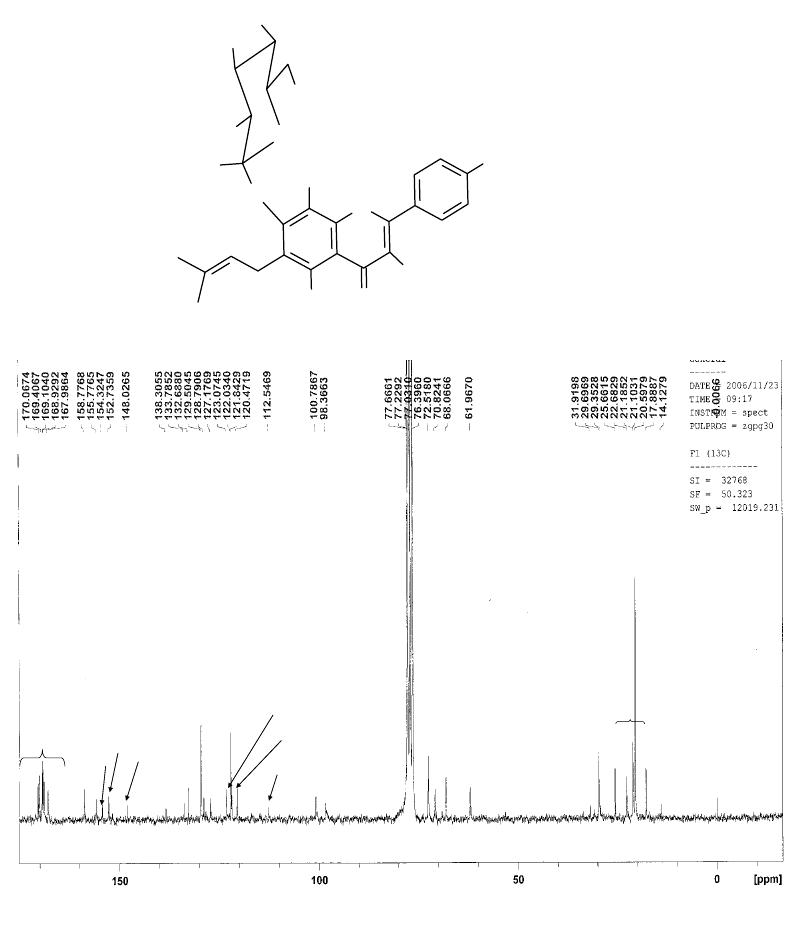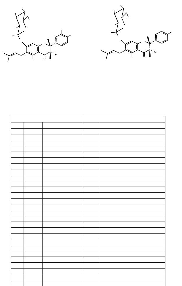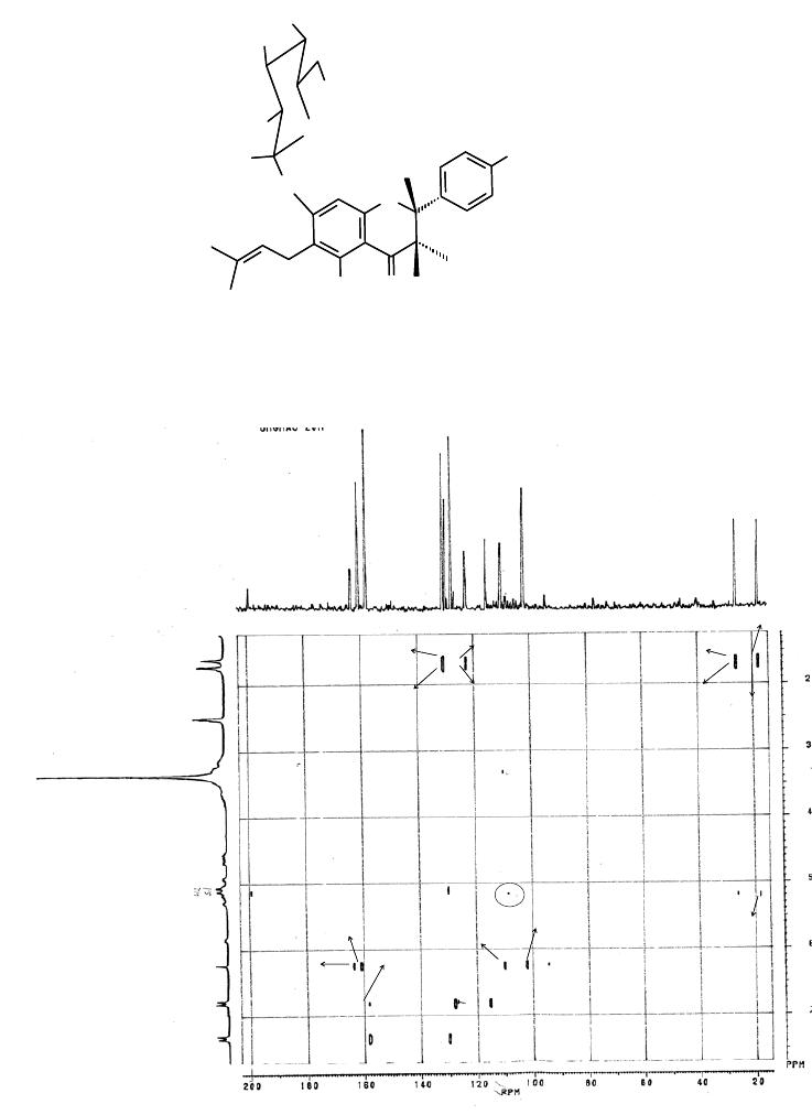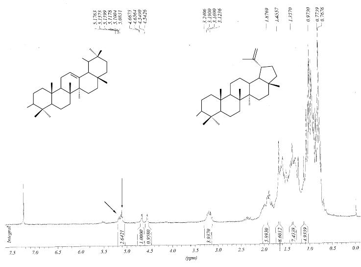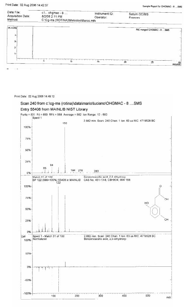 As frações 3-5 forneceram um sólido amarelo identificado como mistura dos