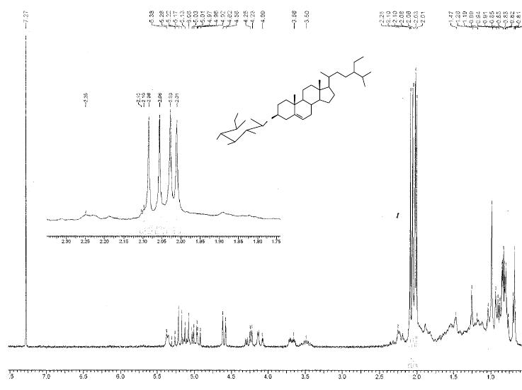 (sl, H-2’’); 3,28 sl, H-3’’); 3,66 (sl, H-4’’); 3,22 (sl, H-5’’); 3,72 (sl, H-6’’), 4,36 (sl, H-1’’’);
