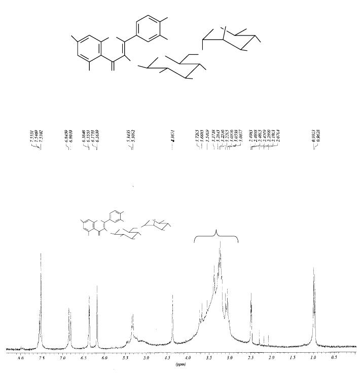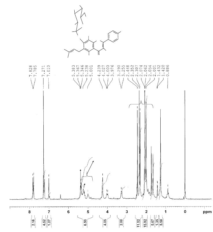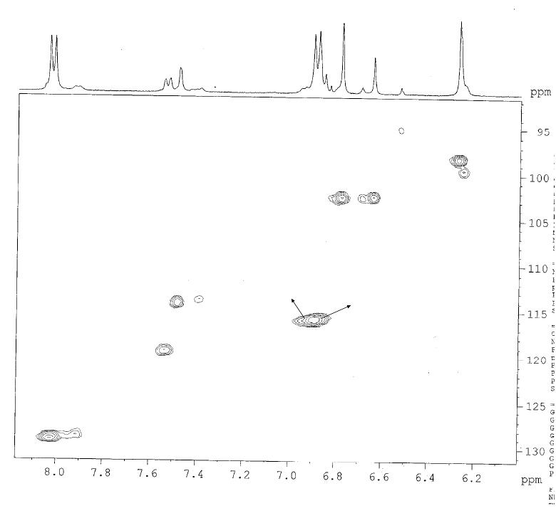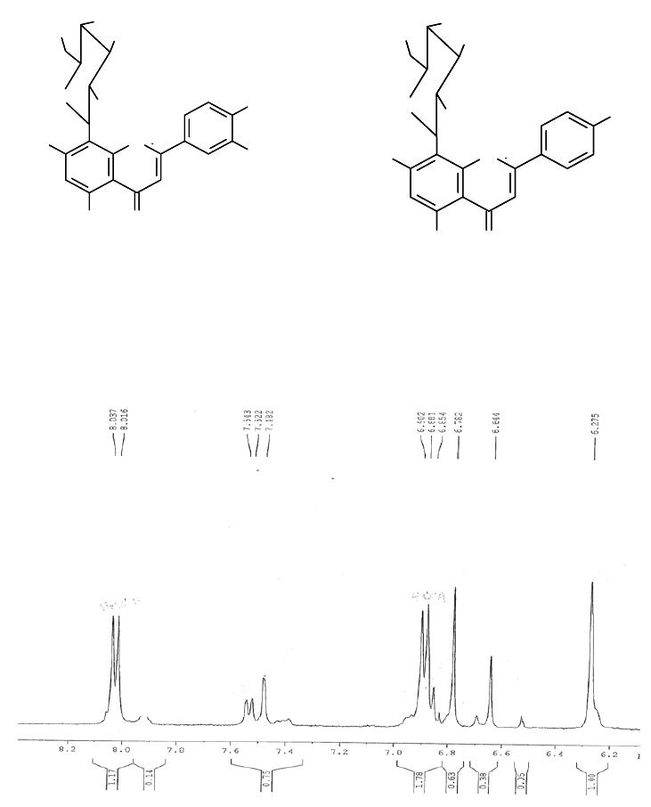 400 MHz,) δ: 6,78 (s, H-3), 6,27 (s, H-6), 8,02 (d, J=8,0Hz , H-2’,6’); 6,89