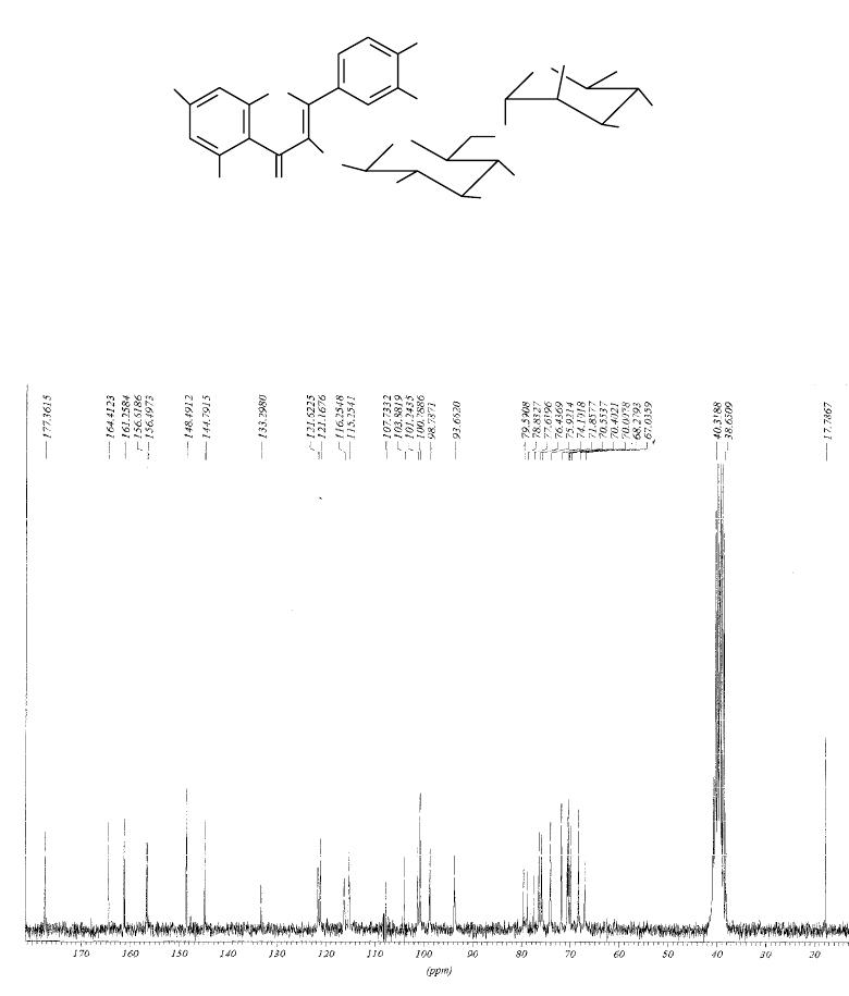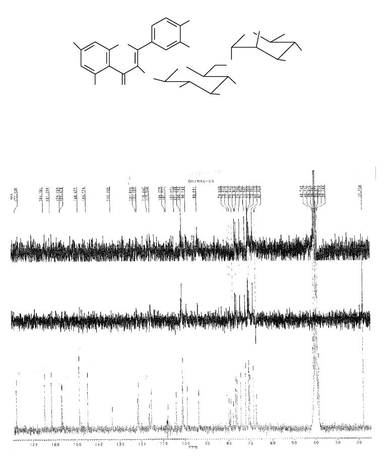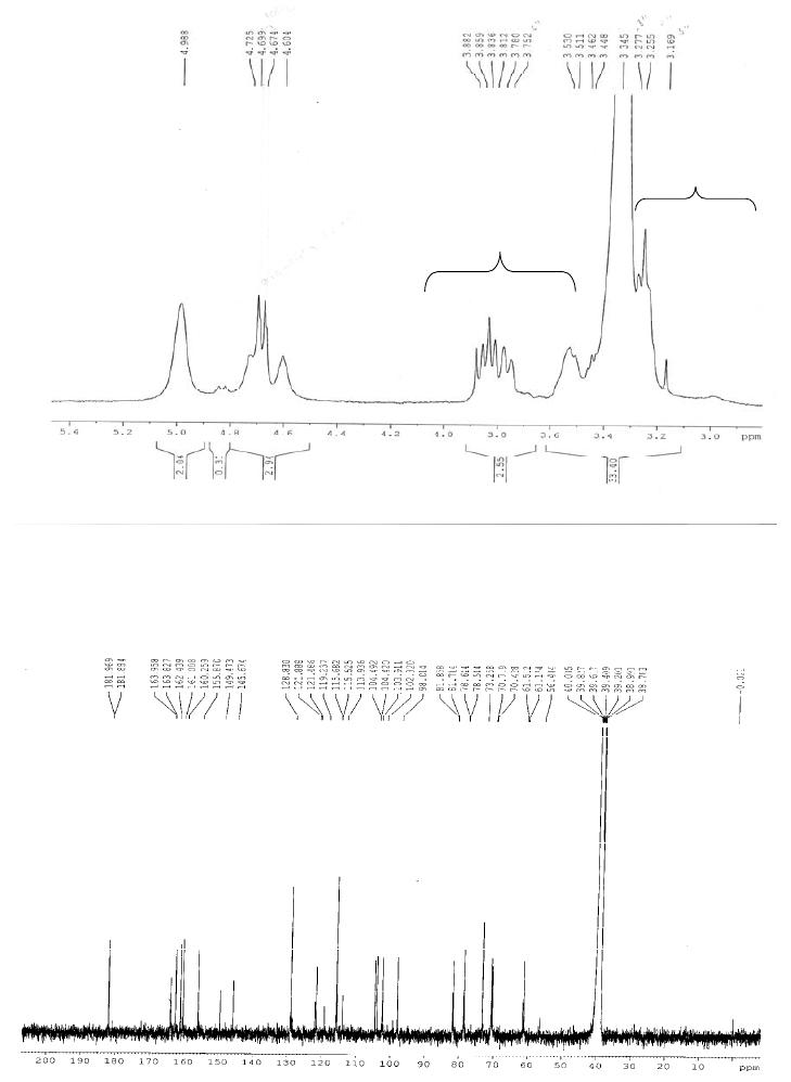 4’’); 3,25 (m, H-5’’); 3,78 (m, H-6’’); 13,17(s, HO-5); RMN