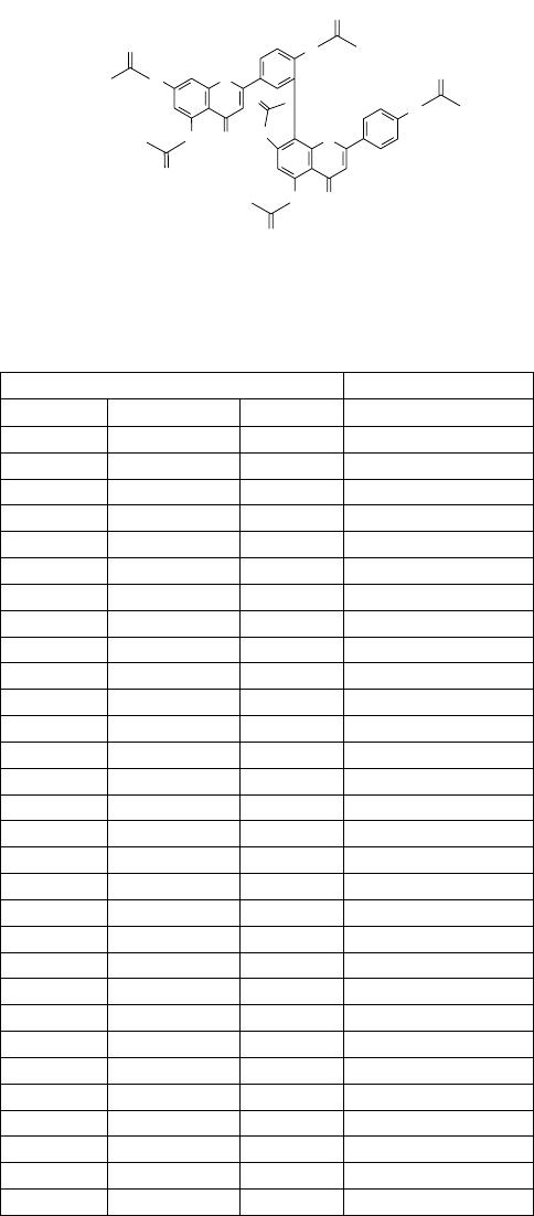 eluida sob as mesmas condições. A fração 3 um pó amarelo foi identificada como flavonóide