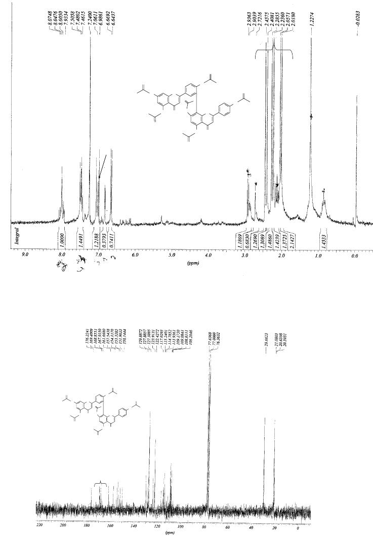 flavonóides orientina (7) e vitexina (8). [(15,0 mg), P.F. 260°C; IV: (KBr)ν