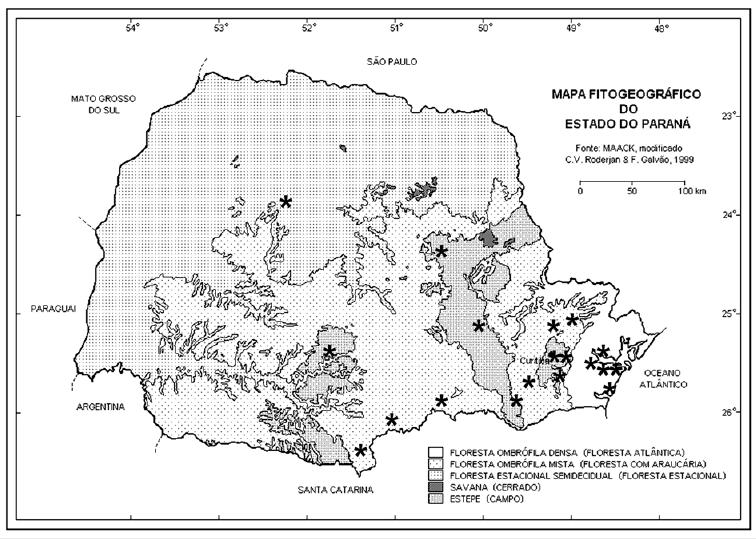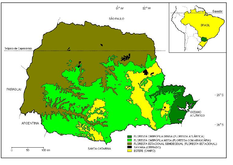 Presente em Floresta Ombrófila Densa, Floresta Ombrófila Mista, Floresta