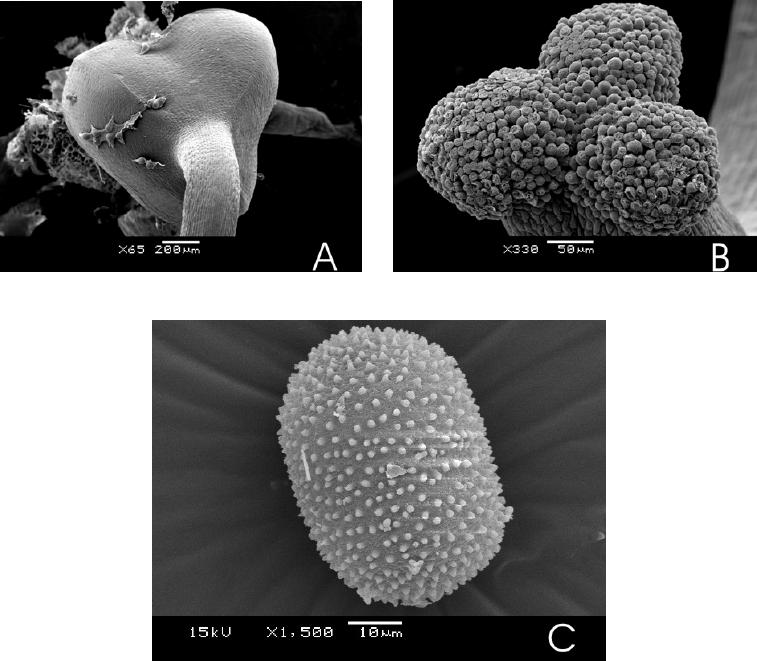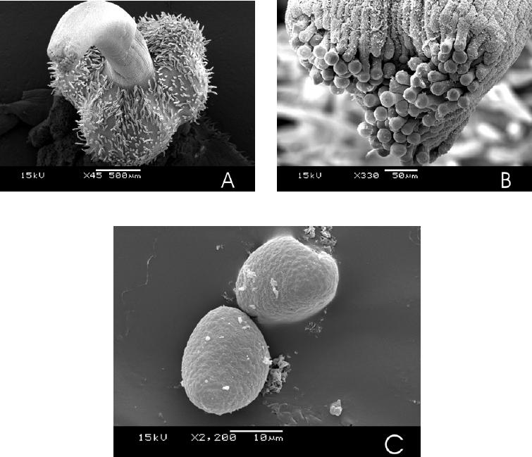 ovário 1,3mm X 0,6mm, oval, glabro ou com tricomas esparsos, três ou dois lóculos,