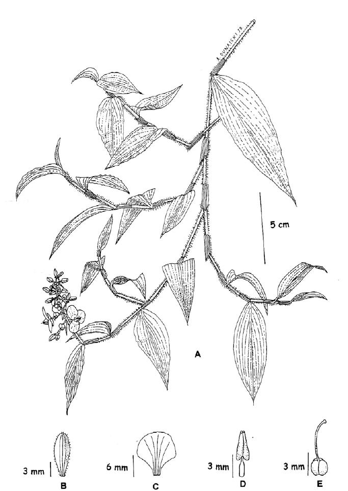 pedúnculo 0,8cm comp., ereto, pubescente; flores pediceladas, pedicelos 0,1-3,5cm