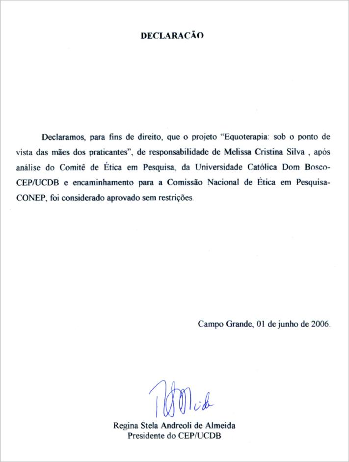 Terapeuta: ⎯ E aí repetiu, o J. já praticou a Equoterapia em outro lugar?