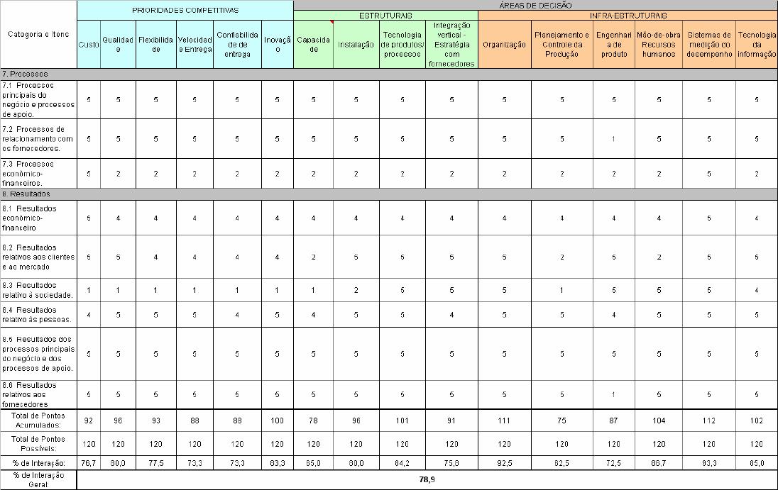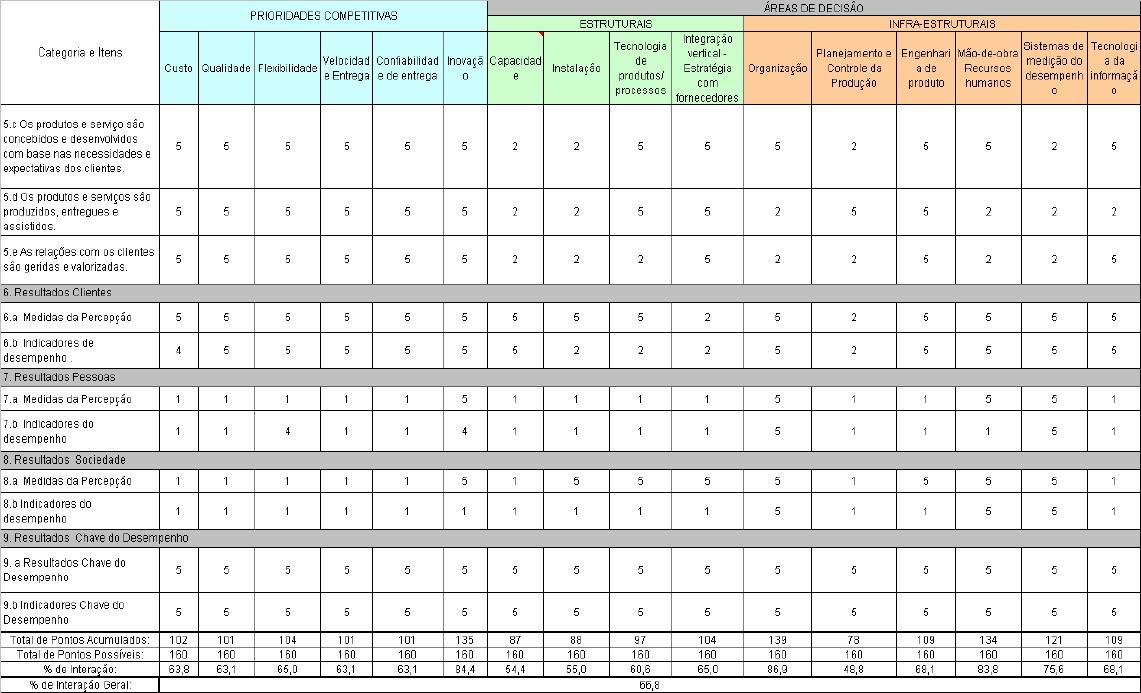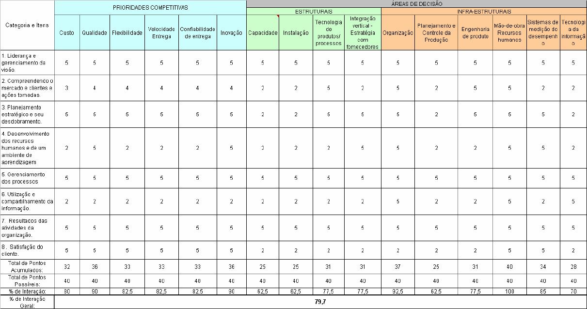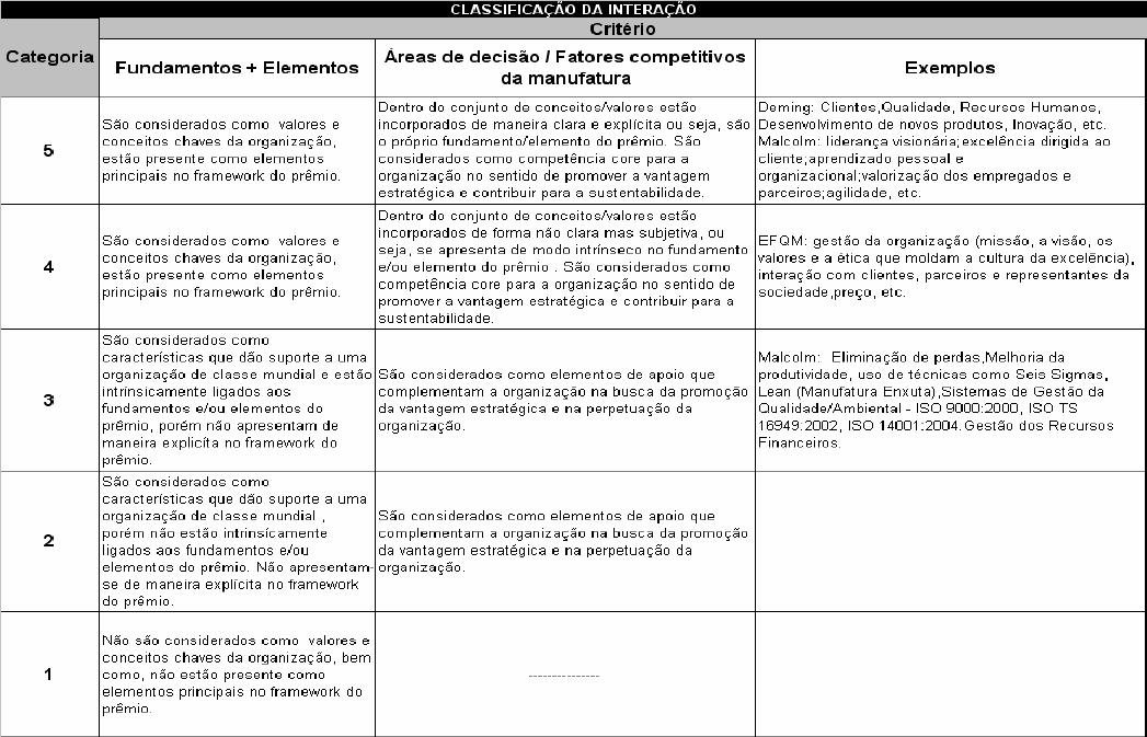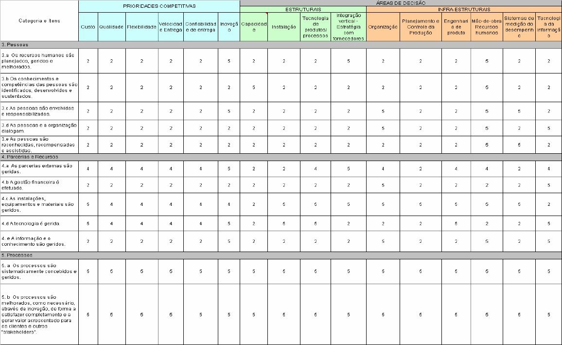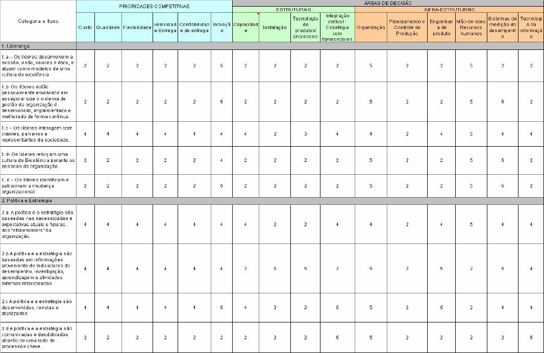 Prêmios de Qualidade, os fatores competitivos e as áreas de decisão da Estratégica da Manufatura.