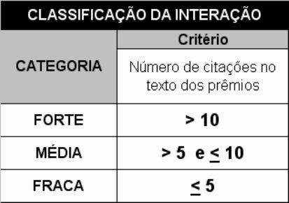 Aplicar os critérios de classificação de interação