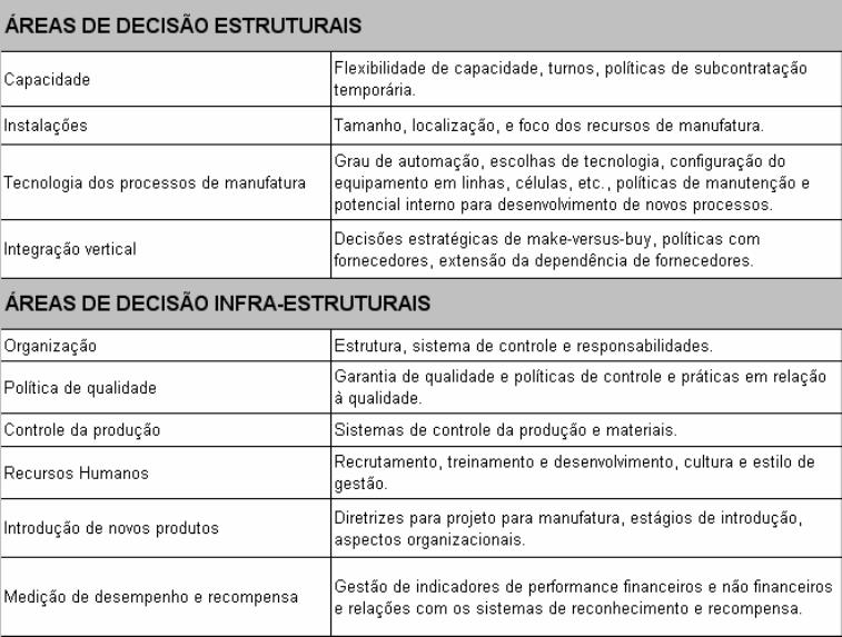 competitivas) e as áreas de decisão.