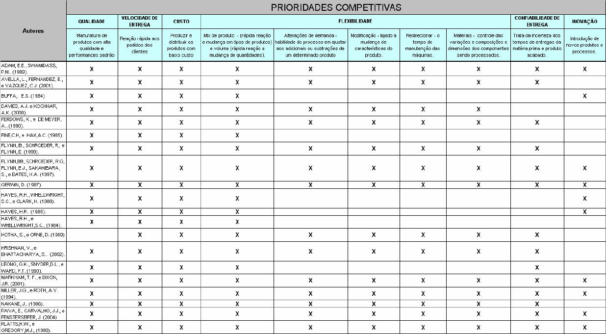 dimensões competitivas da manufatura citadas.