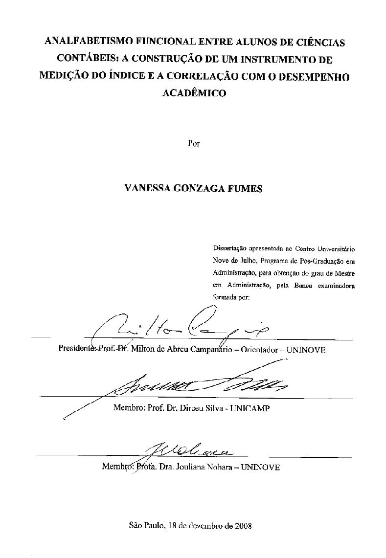 Key-words: Functional Illiteracy, Accounting, Academic Performance