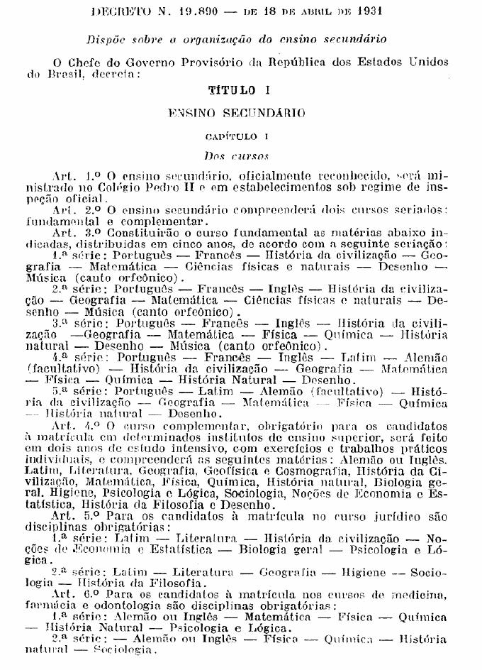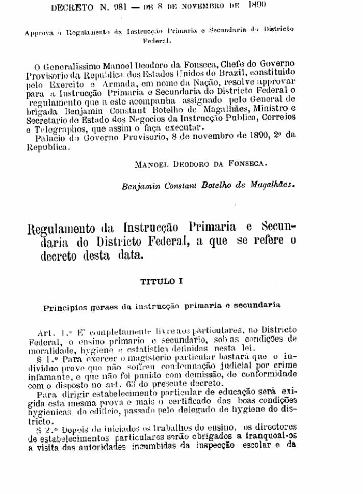(1890-1891) de Francisco Campos (1930- 1932): o projeto educacional das
