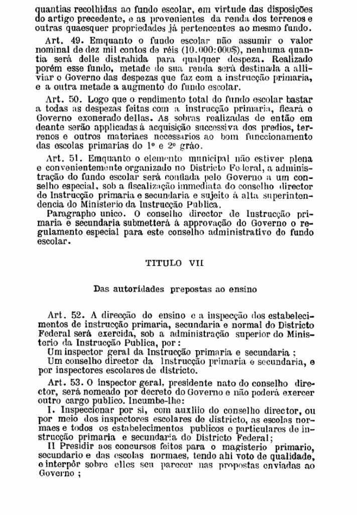 regulamentar o ensino na Capital Federal (Rio de Janeiro), e a segunda regulamentou o