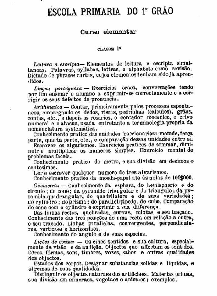 educação primária, considerada essencialmente educação do povo, na reforma Benjamim