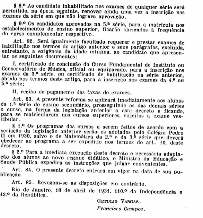 que a Reforma Francisco Campos foi um seguimento da conflagração de 1930. No