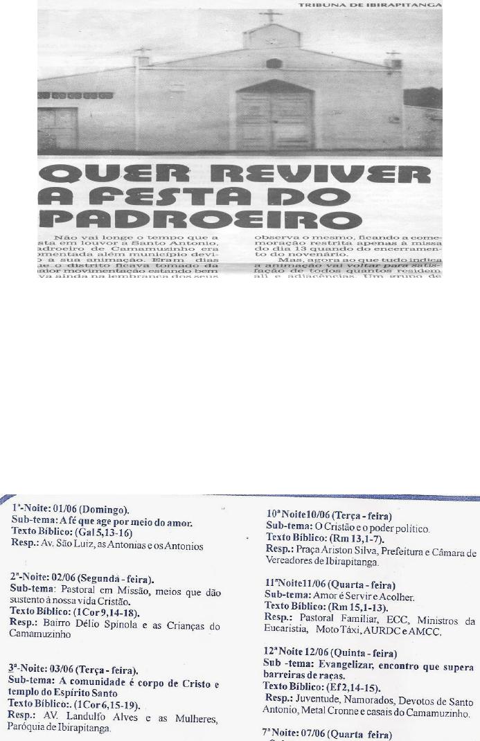 habitantes. Alguns nomes de moradores: Maneca Ferreira da Paz, soldado; Irineu Araújo,